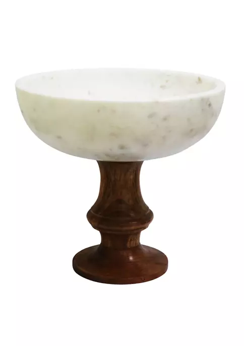 A marbled exterior offers elegance to this sleek bowl from Biltmore® that’s structured on a footed wood base.