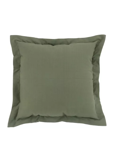 This chambray cotton pillow with a flanged edge features an olive color and a plush polyester fill.