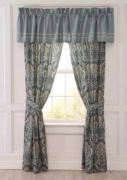 The Hillside Paisley drapery pair is a printed classic and masculine paisley in rich teals and navy blue on a twill cotton ground.