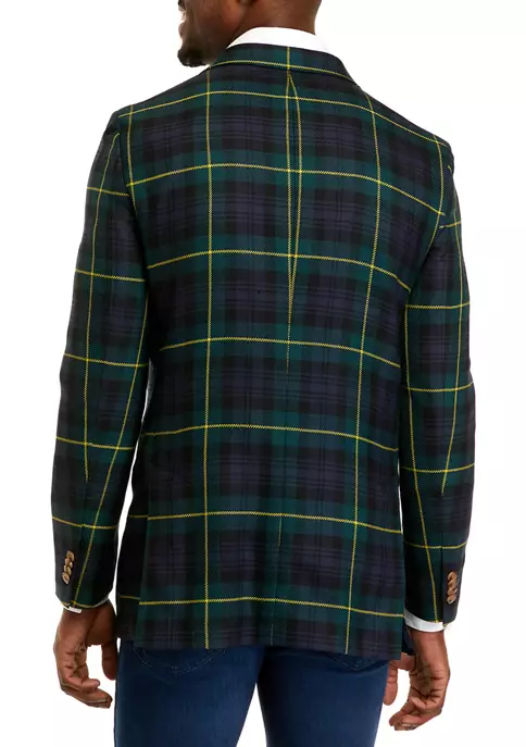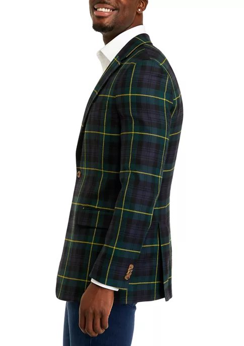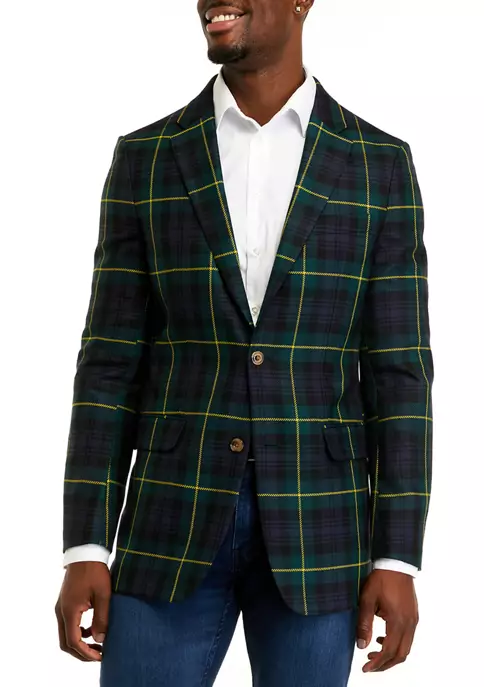 This festive Biltmore® blazer features a green navy and gold tartan pattern. Wear this blazer to the office for extra cheer or as the perfect end-cap for a holiday-ready outfit.