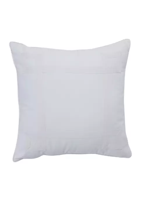 This pillow from Biltmore® is classic pure white with a hotel-style detail of a ribbon bordered frame.