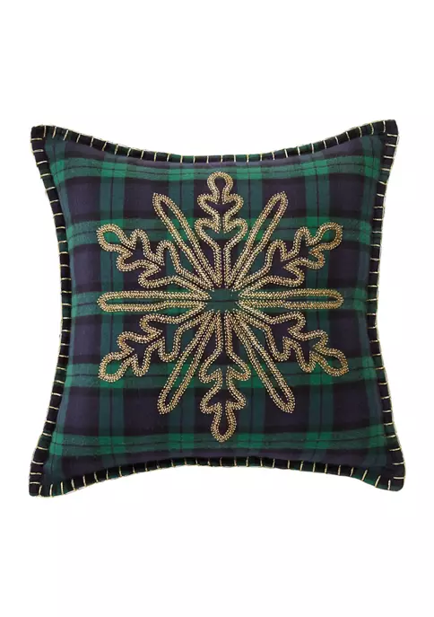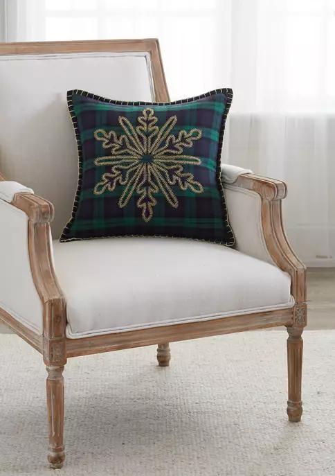 This plaid Snowflake pillow by Biltmore® adds a beautiful accent to your sofa during the holiday.