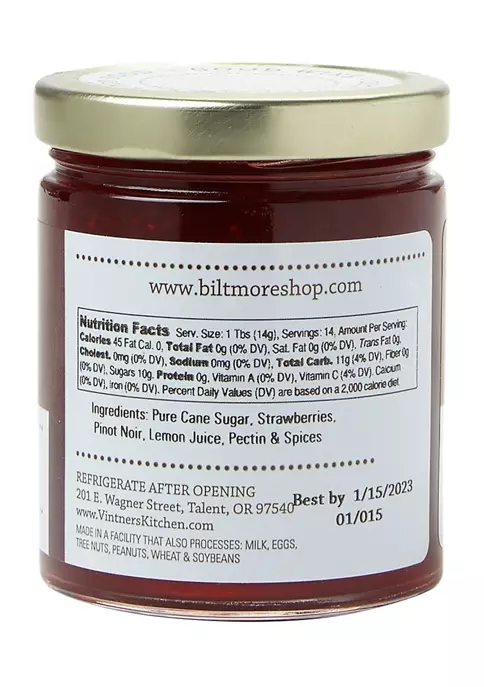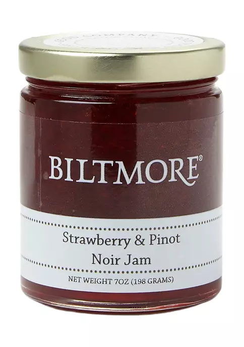 Add this bright Biltmore® Strawberry Pinot Noir Jam to warm toast, crackers, hard cheese, or scones. This unique flavor marries fruit-forward strawberries with pinot noir and lemon.