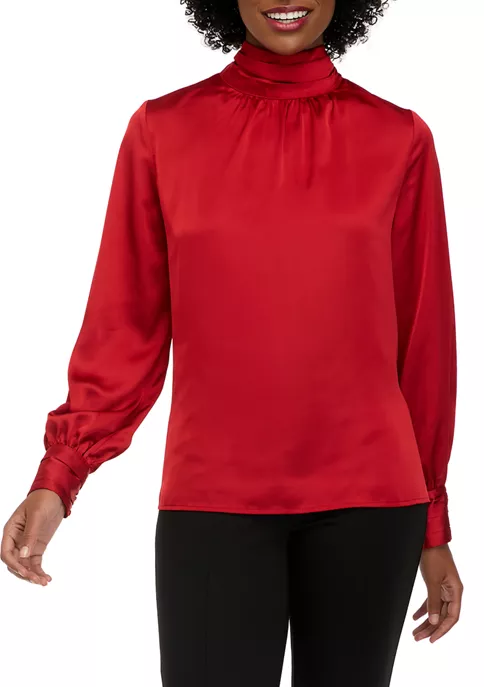 A beautiful bow and billowy blouson sleeves add feminine charm to this top from Biltmore®.