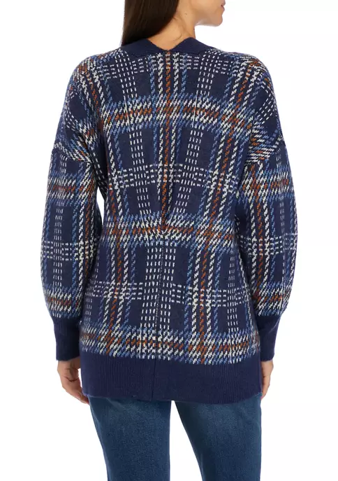 Decked out in plaid with a pleated back, this cardigan from Biltmore® adds preppy style to your wardrobe.